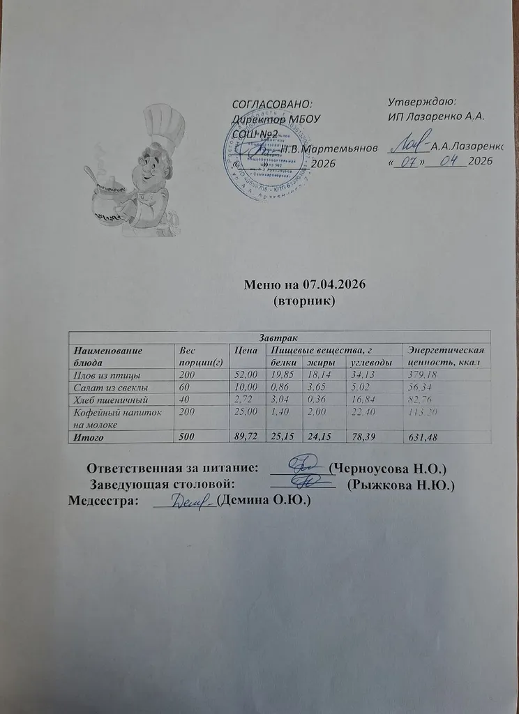 Ежедневное меню горяче...