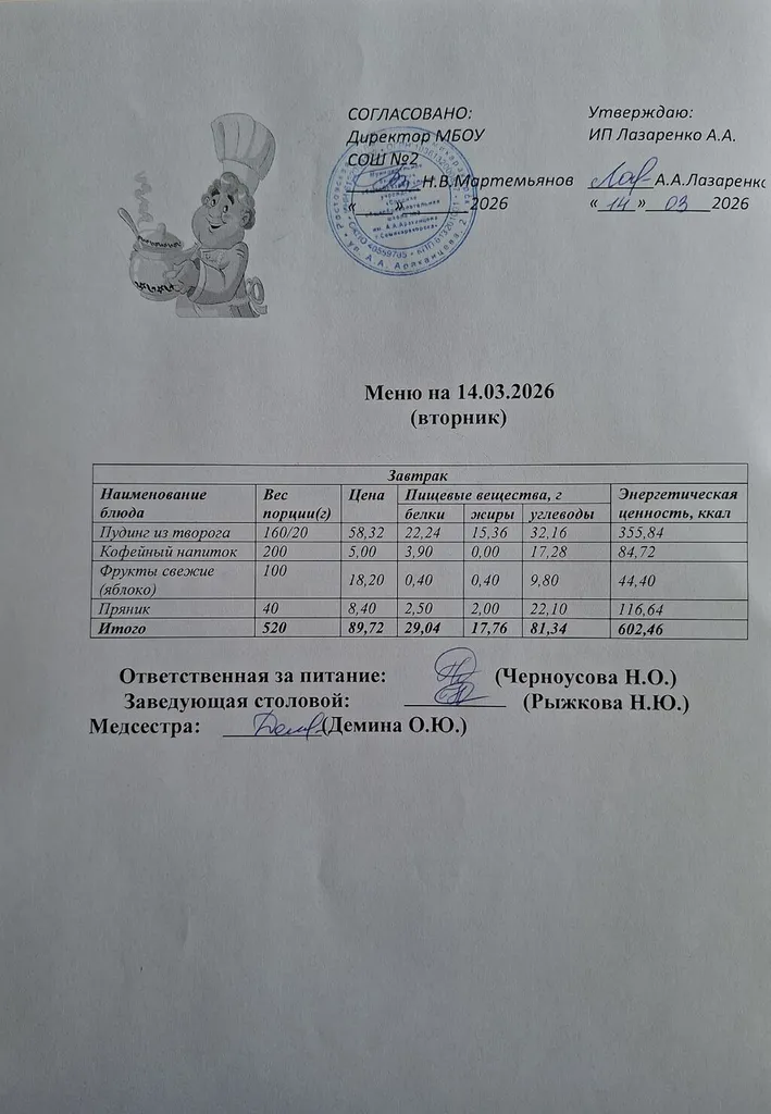 Ежедневное меню горяче...