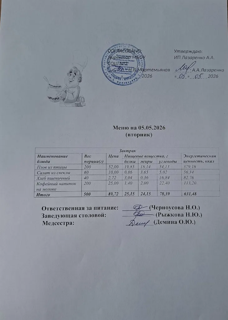 Ежедневное меню горяче...